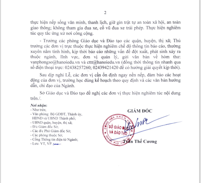 Công văn số 804/SGDĐT-VP của Sở Giáo dục và đào tạo Hà Nội về việc nghỉ dịp lễ Giỗ tổ Hùng Vương, Giải phóng miền Nam, Thống nhất đất nước (30/4) và ngày Quốc tế Lao động (01/5)năm 2022 04 Tháng Tư 2022 :: 9:09 CH :: 503 Views :: 0 Comments :: HOẠT ĐỘNG CÔNG ĐOÀN, HOẠT ĐỘNG CHUNG CỦA TRƯỜNG