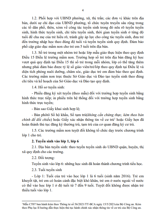 Công văn số 942/SGDĐT-QLT của Sở Giáo dục và đào tạo Hà Nội về việc hướng dãn tuyển sinh vào các trường mầm non, lớp 1 và lớp 6 năm học 2022-2023 10 Tháng Năm 2022 :: 3:20 CH :: 679 Views :: 0 Comments :: TIN TUYỂN SINH, HOẠT ĐỘNG CHUNG CỦA TRƯỜNG