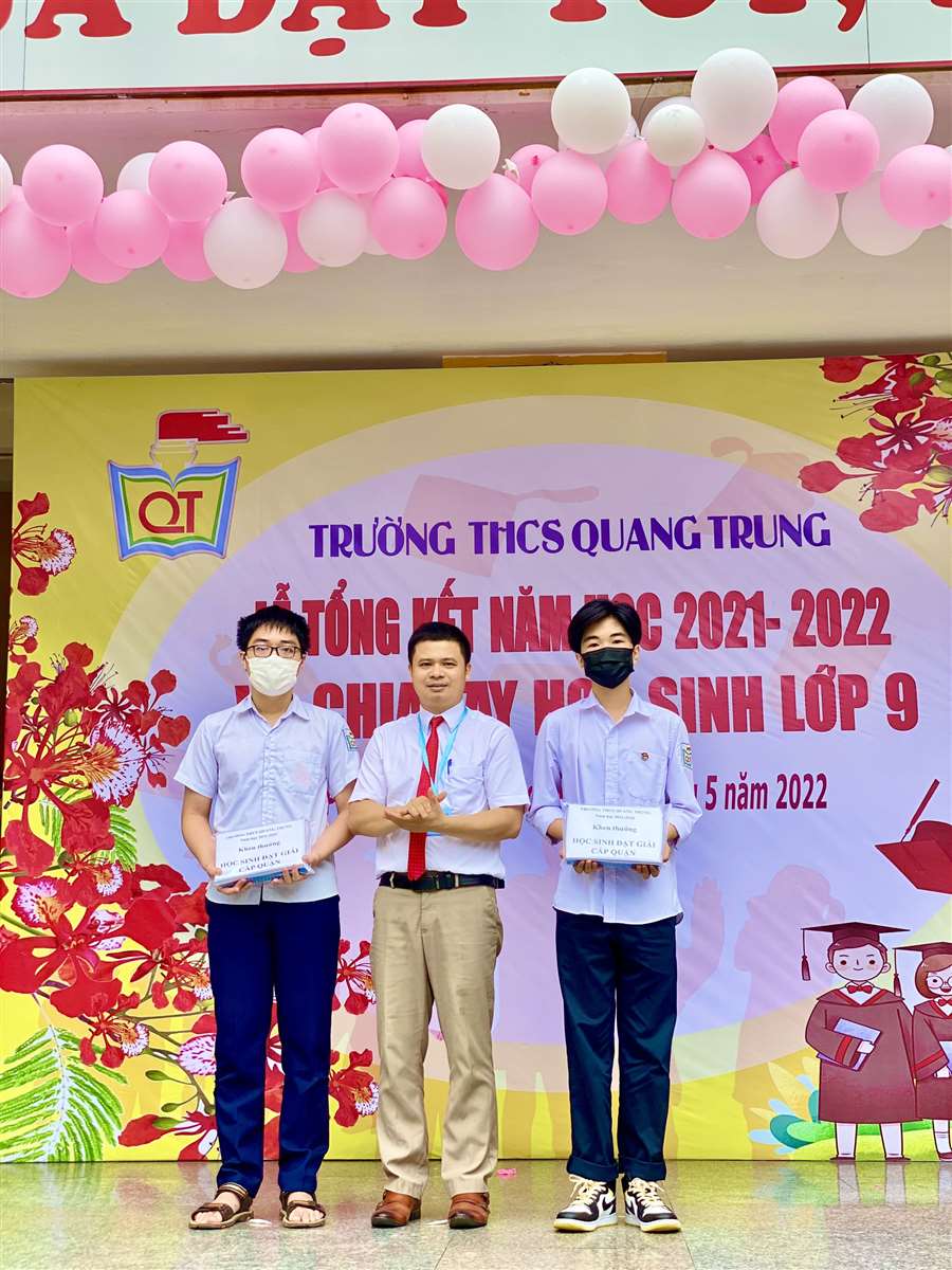 Năm học vừa qua, học sinh nhà trường đã đạt được một số thành tích như: 3 học sinh đạt giải cấp Quận trong kì thi chọn học sinh giỏi lớp 9; trong kì thi Olympic Tài năng trẻ khối 7,8 cấp Quận, nhà trường đạt 5 giải Ba và 8 giải Khuyến khích. Đặc biệt, em Nguyễn Nguyên Lê – học sinh lớp 8G1 không chỉ đạt thành tích cao trong học tập, HSG xuất sắc nhiều năm liền, Nguyên Lê còn khổ công luyện tập cùng cây đàn violin để trở thành một nghệ sĩ vĩ cầm có tên tuổi không chỉ trong nước mà được cả bạn bè quốc tế biết đến, em đã được bầu chọn là một trong 20 Gương mặt trẻ Việt Nam tiêu biểu năm 2021, được khen thưởng học sinh tiêu biểu của Thủ Đô năm học 2021 – 2022 . Trong năm học này, nhà trường còn ghi nhận rất nhiều thành tích khác của các em hs trong các hoạt động phong trào như: Cuộc thi vẽ tranh Vui Tết trung thu vui khỏe, an toàn năm 2021”, cuộc thi vẽ tập san, văn nghệ chào mừng ngày nhà giáo VN 20/11, phong trào kế hoạch nhỏ...Trải qua một năm học, thành tích của nhà trường tiếp tục được giữ vững và phát huy, đó là những thành tích đáng tự hào là những trái ngọt hoa thơm, phần thưởng xứng đáng với những miệt mài cố gắng của tập thể giáo viên, học sinh toàn trường. Bên cạnh đó,để đạt được nhiệm vụ trong một năm học đầy khó khăn, nhà trường đã nhận được sự quan tâm, giúp đỡ, chỉ đạo sát sao của các cấp lãnh đạo, sự phối hợp nhiệt tình của các phụ huynh học sinh