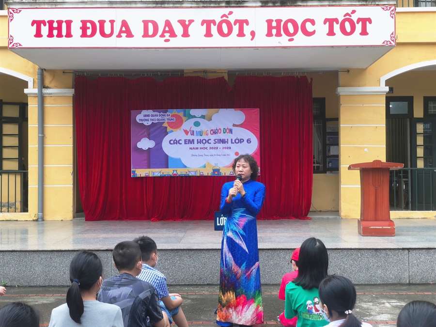 Thầy giáo Nguyễn Văn Tùng – Bí thư chi bộ, Hiệu trưởng nhà trường đã phát biểu tại buổi lễ, vui mừng chào đón các con học sinh khối 6 đến với ngôi trường mới. Thầy mong rằng các con sẽ tiếp tục cố gắng, phát huy tinh thần học tập để trở thành con ngoan, trò giỏi.