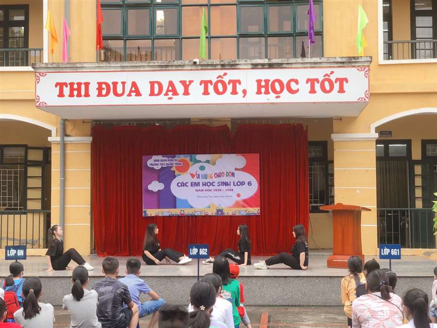 Ngay từ sáng sớm, cánh cổng trường đã được mở ra đón chào Phụ huynh và học sinh lớp 6 thân yêu. Đội ngũ cán bộ nhân viên, các thầy cô giáo ai nấy đều rạng rỡ tươi cười chỉ dẫn cho học sinh vào vị trí ngồi của lớp mình.