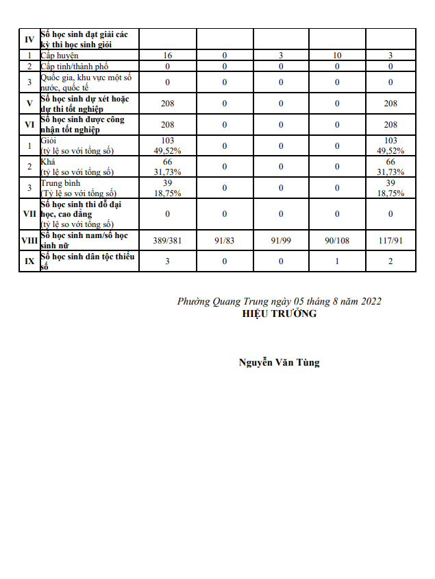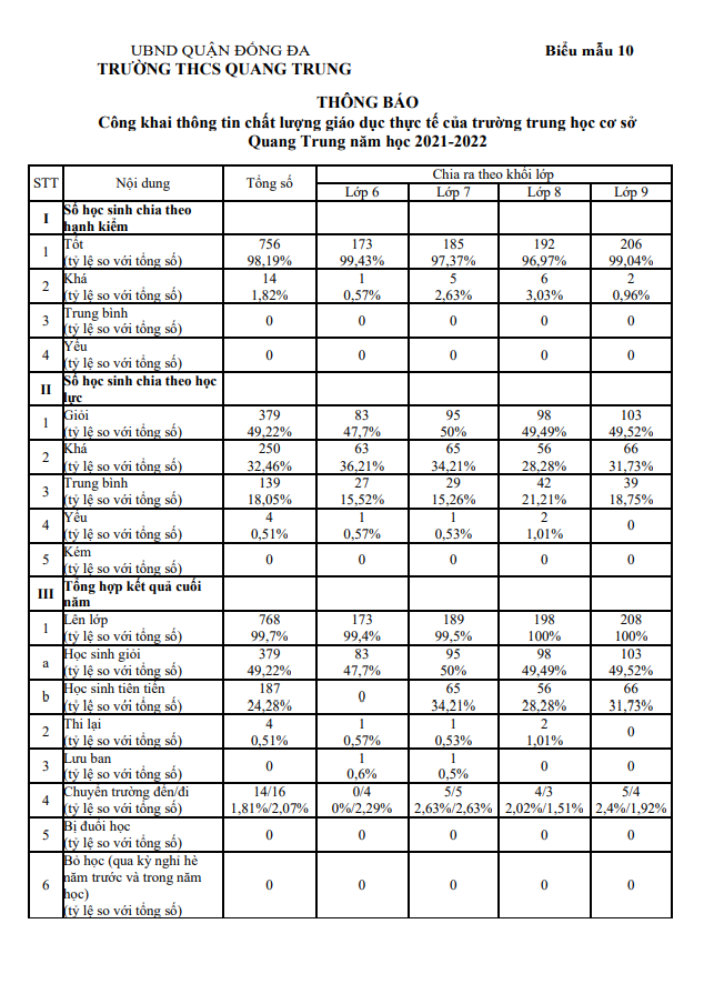 Công khai thông tin chất lượng giáo dục thực tế của trường THCS Quang Trung năm học 2021-2022 20 Tháng Tám 2022 :: 9:18 SA :: 483 Views :: 0 Comments :: HOẠT ĐỘNG CHUNG CỦA TRƯỜNG