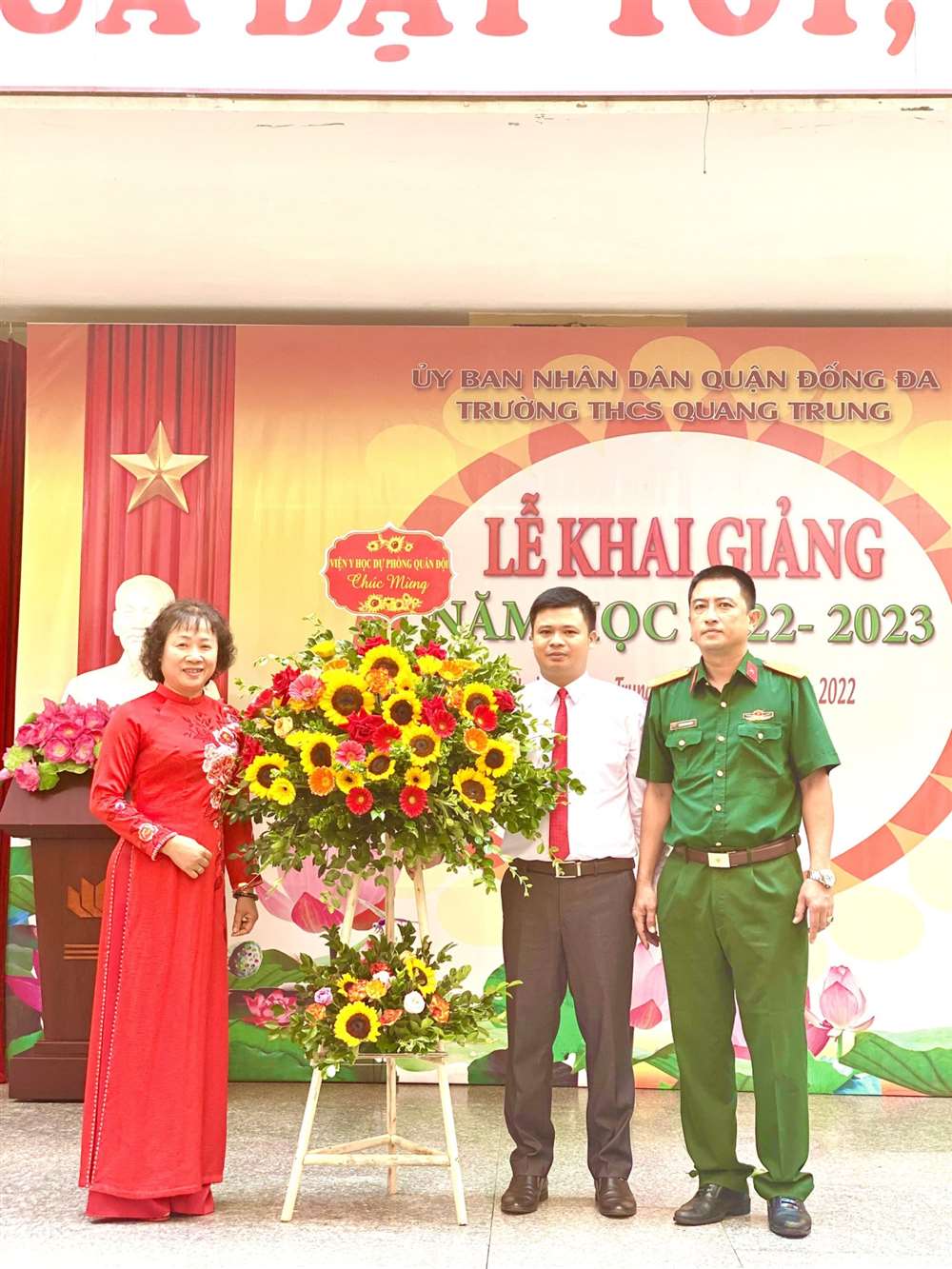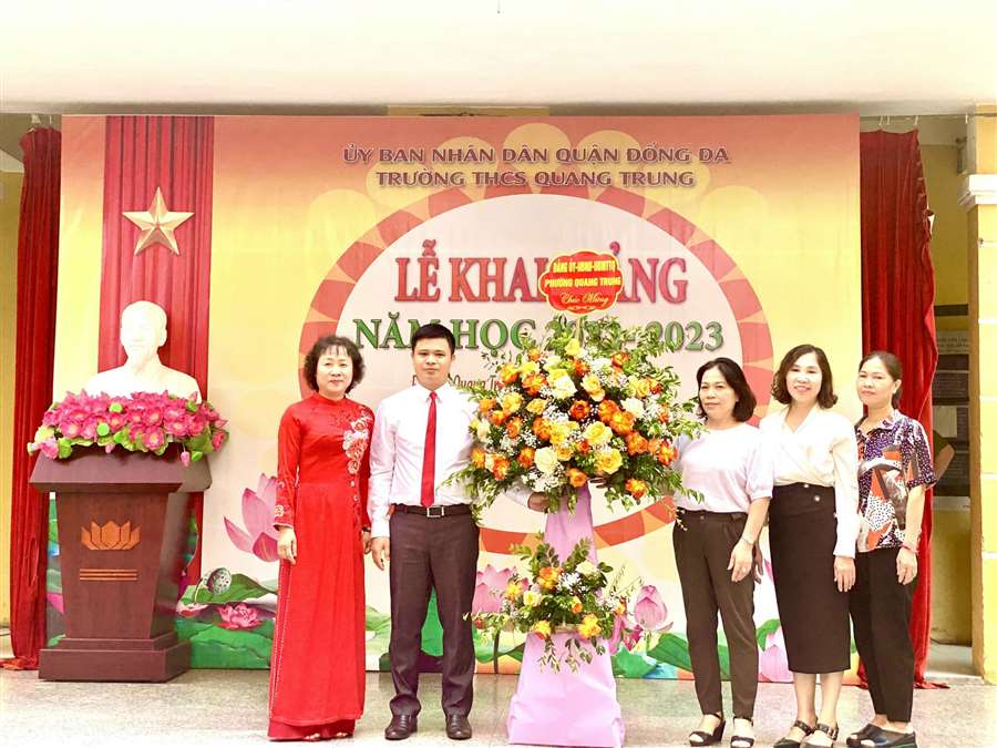 Trường THCS Quang Trung vinh dự được đón các các đồng chí là lãnh đạo đại diện các ban ngành đoàn thể phường Quang Trung, phường Trung Liệt, phường Ô Chợ Dừa và đại diện cha mẹ học sinh các khối lớp, cùng tham dự lễ khai giảng với Ban giám hiệu, các thầy cô giáo và gần 800 học sinh của nhà trường. Lễ khai giảng năm nay được tổ chức tinh gọn nhưng tập thể giáo viên, học sinh nhà trường vẫn chuẩn bị vô cùng nghiêm túc, chu đáo.