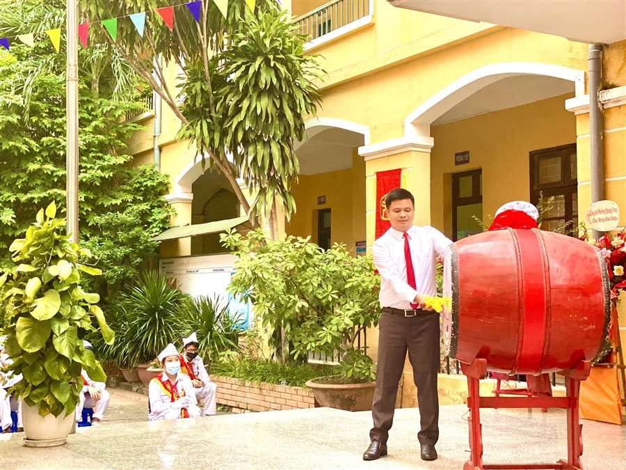 Thầy Nguyễn Văn Tùng – Bí thư chi bộ, Hiệu trưởng nhà trường đã đánh vang hồi trống khai trường. Tiếng trống khai trường rộn rã vang lên, cất cao và ngân nga giữa bầu trời mùa thu tháng 9. Tiếng trống trường như giục giã những bước chân học trò mau bước vào năm học mới, tiếng trống khai trường như tiếp thêm niềm hứng khởi sự quyết tâm rèn luyện đức, trí, tài thành những người con ngoan trò giỏi xứng đáng với sự kì vọng của cha mẹ, công lao dạy dỗ của thày cô.