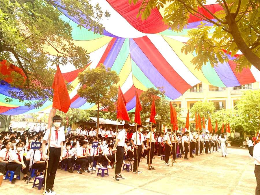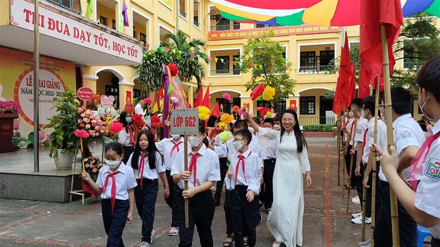 Mở đầu buổi lễ là “Lễ chào mừng học sinh khối 6” với những gương mặt tràn đầy niềm tin hồ hởi, cờ hoa rực rỡ đón chào năm học mới và nghi lễ chào cờ trang trọng.