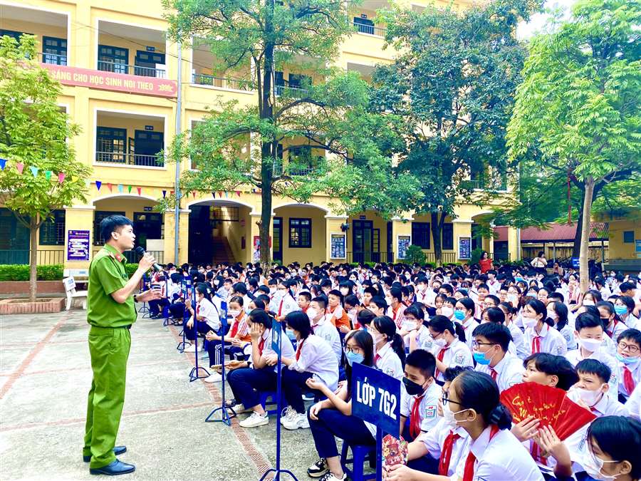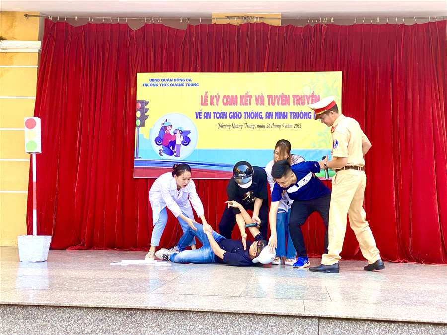 Trong chương trình, các bạn học sinh đã được nghe đồng chí Thường úy Phí Đình Tiệp – giảng viên khoa Cảnh sát giao thông, Học viện cảnh sát nhân dân tuyên truyền về Nghị định 100/2019/NĐ-CP ngày 30/12/ 2019 quy định xử phạt vi phạm hành chính trong lĩnh vực giao thông đường bộ và đường sắt và kỹ năng xử lý tình huống khi xảy ra tai nạn giao thông. Bên cạnh đó, bằng những câu hỏi, trò chơi tìm hiểu về pháp luật, các em học sinh đã được hiểu rõ hơn những tình huống vi phạm thường gặp hàng ngày như không đội mũ bảo hiểm, lạng lách, đãnh võng trên đường hay đi dàn hàn ngang trên đường phố. Chương trình trở nên sôi động và hấp dẫn hơn với tiểu phẩm hài về An toàn giao thông do các sinh viên của Học viện cảnh sát nhân dân thể hiện. Dưới lăng kính hài hước, lối diễn xuất vui tươi, các bạn sinh viên đã khéo léo gửi gắm, tuyên truyền các kiến thức về Luật giao thông và tuyên truyền để học sinh nâng cao ý thức khi tham gia giao thông. Đó không chỉ là tình huống mang lại những giây phút thư giãn cho các em học sinh mà còn giúp các em ý thức được hậu quả khi không chấp hành pháp luật, sẽ gây nguy hiểm cho bản thân và những người xung quanh.