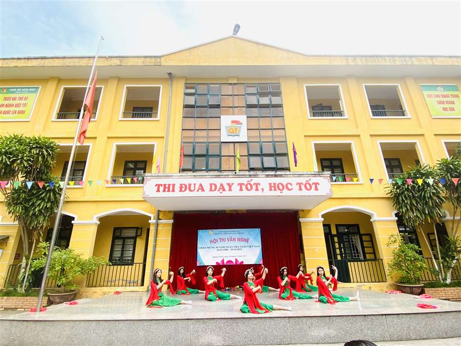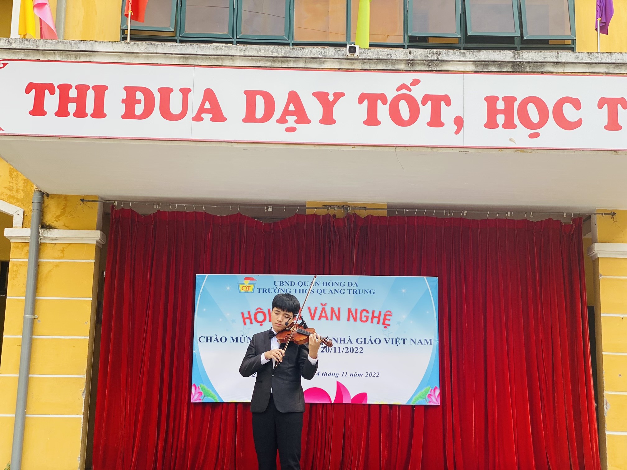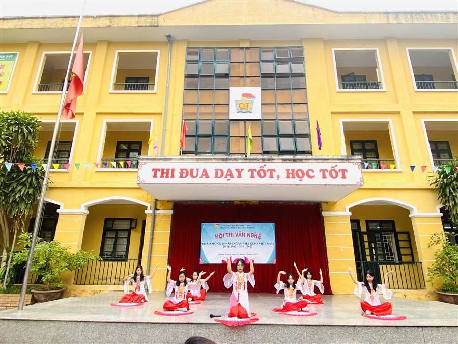 Hội diễn văn nghệ chào mừng ngày Nhà giáo Việt Nam là hoạt động nằm trong chuỗi các hoạt động hướng tới kỉ niệm, tri ân các thầy, cô giáo của trường THCS Quang Trung. Những lời ca tiếng hát, điệu múa được học sinh các lớp tập luyện trong những ngày qua và trình bày trên sân khấu thể hiện sự tri ân đối với những người thầy, người cô của các thế hệ học trò và lòng yêu nghề, tình thương, trách nhiệm của các nhà giáo đối với những học sinh thân yêu.