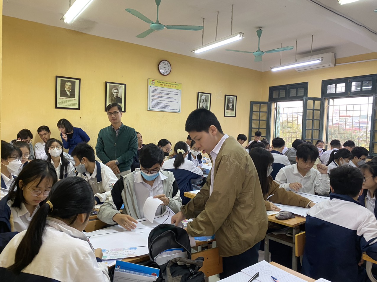 Các thầy, cô giáo đại diện nhà trường đã sổi nổi, phấn khởi tham gia hội thi giáo viên giỏi cấp Quận: Thầy giáo Nguyễn Văn Quốc dự thi môn Lịch sử cùng tập thể lớp 87G1; cô giáo Nguyễn Thị Bích Vân dự thi môn Hóa học cùng tập thể 9G1; cô giáo Nguyễn Minh Phương dự thi môn Ngữ văn cùng tập thể 6N.