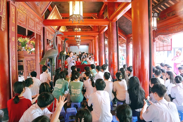 Tại Văn Miếu - Quốc Tử Giám, thầy Hiệu trưởng Nguyễn Văn Tùng thay mặt BGH Nhà trường và đoàn trình Chúc văn lên các bậc Tiên Hiền, bày tỏ lòng biết ơn tới các bậc tiền nhân thánh hiền đã có công mở nguồn đại học, dựng lên Văn Miếu – Quốc Tử Giám. Sau đó, các em đã được lắng nghe hướng dẫn viên giới thiệu về lịch sử hình thành và phát triển của Văn Miếu – Quốc Tử Giám.