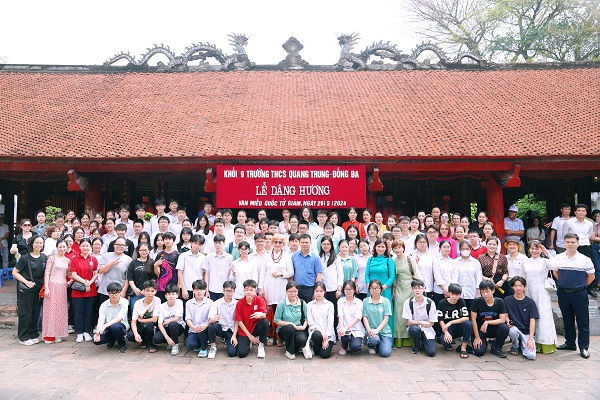 Với ý nghĩa cao cả đó, sáng Chủ nhật ngày 26/5/2024, Ban Giám hiệu trường THCS Quang Trung cùng đại diện Ban PHHS và các thầy cô giáo chủ nhiệm khối 9 đã tổ chức cho các em học sinh khối 9 (niên khoá 2020-2024) đi dâng hương tại Văn Miếu - Quốc Tử Giám. Đây là hoạt động truyền thống của nhà trường nhằm mục đích động viên, khích lệ và cũng là thể hiện sự quan tâm, yêu thương của các thầy cô và các bậc phụ huynh dành cho các con học sinh khối 9 trước kì thi vào lớp 10 sắp tới.