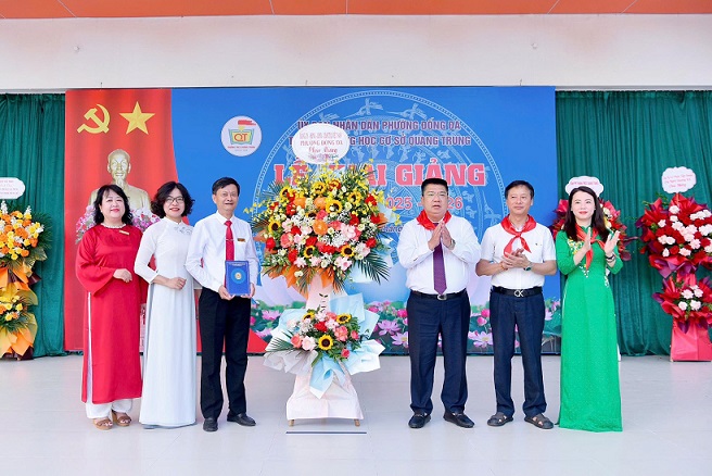 Trong buổi lễ khai giảng năm học mới, trường THCS Quang Trung vinh dự được đón tiếp: đồng chí Trịnh Hữu Tuấn - Phó Bí thư Đảng ủy, Chủ tịch UBND phường Đống Đa; các đồng chí đại diện Đảng ủy, HĐND, UBND, MTTQ, phòng Văn hóa xã hội phường Đống Đa; Ban đại diện cha mẹ học sinh nhà trường và các lớp, cùng toàn thể cán bộ, giáo viên, nhân viên và các em học sinh thân yêu của trường có mặt đông đủ. Sự hiện diện ấy chính là nguồn động viên to lớn, khích lệ thầy trò nhà trường vững tin bước vào năm học mới. Mở đầu chương trình, những tràng pháo tay rộn ràng đã vang lên chào đón các em học sinh lớp 6 - khóa thứ 40 của nhà trường. Những gương mặt bỡ ngỡ xen lẫn hồi hộp của các em đã được sưởi ấm bởi vòng tay yêu thương của thầy, cô giáo, nhân viên nhà trường và sự chào đón nồng nhiệt từ các anh chị khóa trên. Đây sẽ là khởi đầu đáng nhớ cho chặng đường học tập đầy ước mơ phía trước. Trong không khí trang nghiêm, thầy Trần Quốc Hải - Bí thư Chi bộ, Hiệu trưởng nhà trường đã trân trọng đọc thư của Chủ tịch nước Lương Cường gửi tới thầy, cô và học sinh cả nước nhân ngày khai giảng năm học mới. Những lời nhắn nhủ tha thiết từ vị Chủ tịch nước đã thắp sáng trong trái tim thầy và trò niềm tin, khát vọng vươn lên, cống hiến cho sự nghiệp trồng người và cho Tổ quốc. Đại diện Cha mẹ học sinh, bà Phạm Thu Hiền - Trưởng ban, xúc động gửi lời cảm ơn sâu sắc đến các thầy, cô giáo- những người đã luôn âm thầm, tận tụy dìu dắt học sinh trưởng thành. Bà cũng thay mặt các bậc phụ huynh gửi gắm niềm tin vào sự nghiệp giáo dục của nhà trường, mong muốn được đồng hành và chung tay cùng thầy, cô trong hành trình vun đắp cho thế hệ trẻ. Thay mặt tập thể cán bộ, giáo viên, nhân viên nhà trường, thầy Trần Quốc Hải gửi lời tri ân đến sự quan tâm của các cấp lãnh đạo, sự ủng hộ của phụ huynh và đặc biệt là sự đồng lòng, nỗ lực không ngừng của giáo viên, nhân viên và học sinh trường Quang Trung. Chính sự chung tay ấy đã góp phần làm nên một mái trường ngày càng khang trang, vững mạnh, giàu truyền thống và tràn đầy niềm tin. Sau phần lễ trang nghiêm, học sinh các lớp đã trở về phòng học để tham dự trực tuyến, cùng cả nước kỷ niệm 80 năm thành lập Bộ Quốc gia Giáo dục (nay là Bộ GD&ĐT) và Lễ khai giảng năm học 2025-2026. Những giây phút ấy không chỉ là niềm tự hào mà còn là lời nhắc nhở mỗi học sinh thêm ý thức về trách nhiệm học tập, rèn luyện để viết tiếp những trang sử vàng của nền giáo dục dân tộc. Lễ khai giảng khép lại nhưng mở ra một hành trình mới - hành trình của tri thức, của khát vọng và niềm tin. Với sự đồng hành của các cấp lãnh đạo, sự sẻ chia của phụ huynh, sự tận tụy của thầy cô và nỗ lực của học trò, tin rằng năm học 2025-2026 sẽ là một năm học rực rỡ, tràn đầy thành công, để Trường THCS Quang Trung tiếp tục khẳng định vị thế là ngôi trường giàu truyền thống và tỏa sáng trong sự nghiệp.